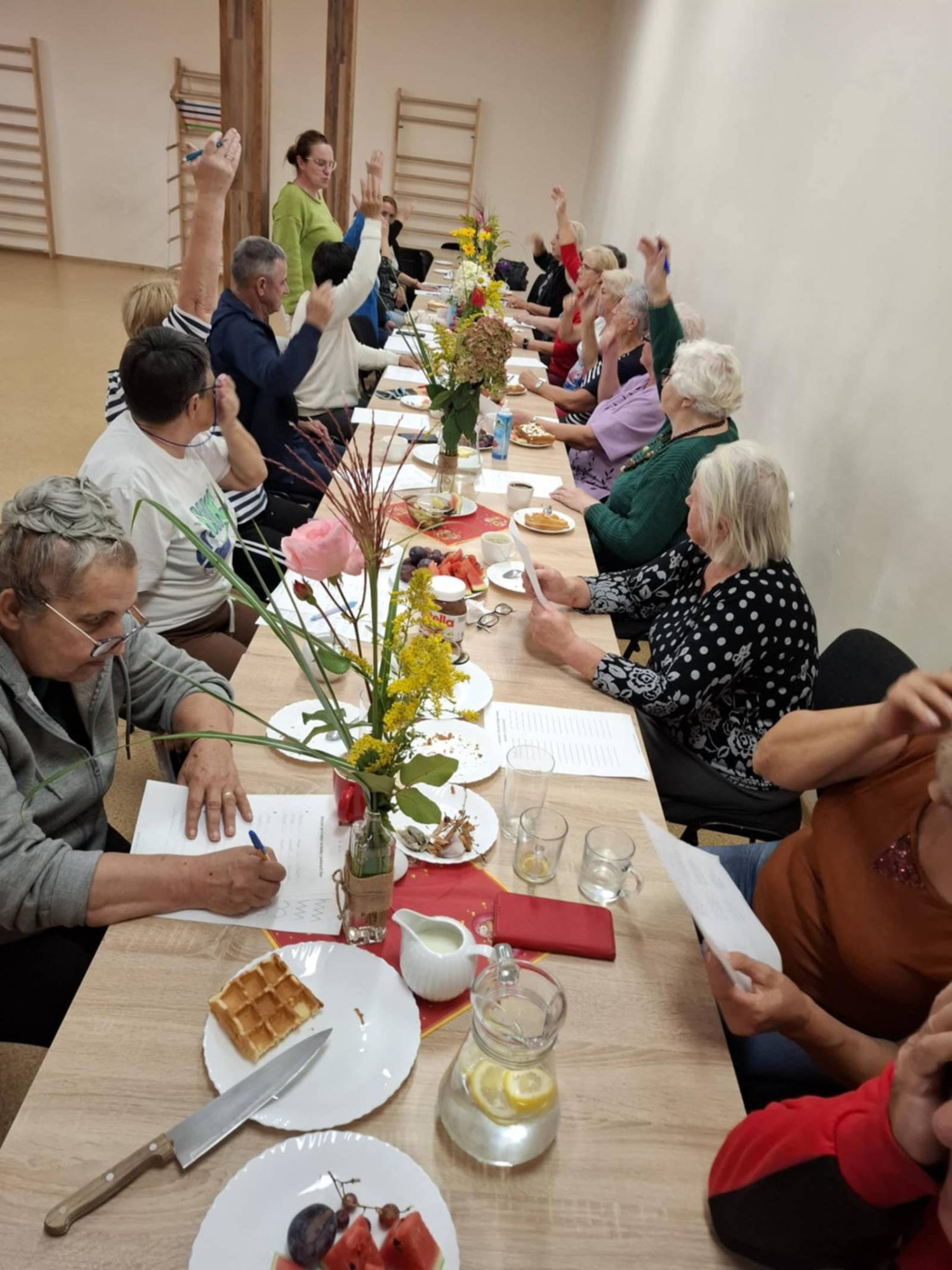 Spotkanie było intensywne i pełne pozytywnej energii. Seniorzy nie tylko doskonalili swoje umiejętności, ale także mieli okazję do integracji. W przerwie czekał na nich słodki poczęstunek – kawa i gofry.
