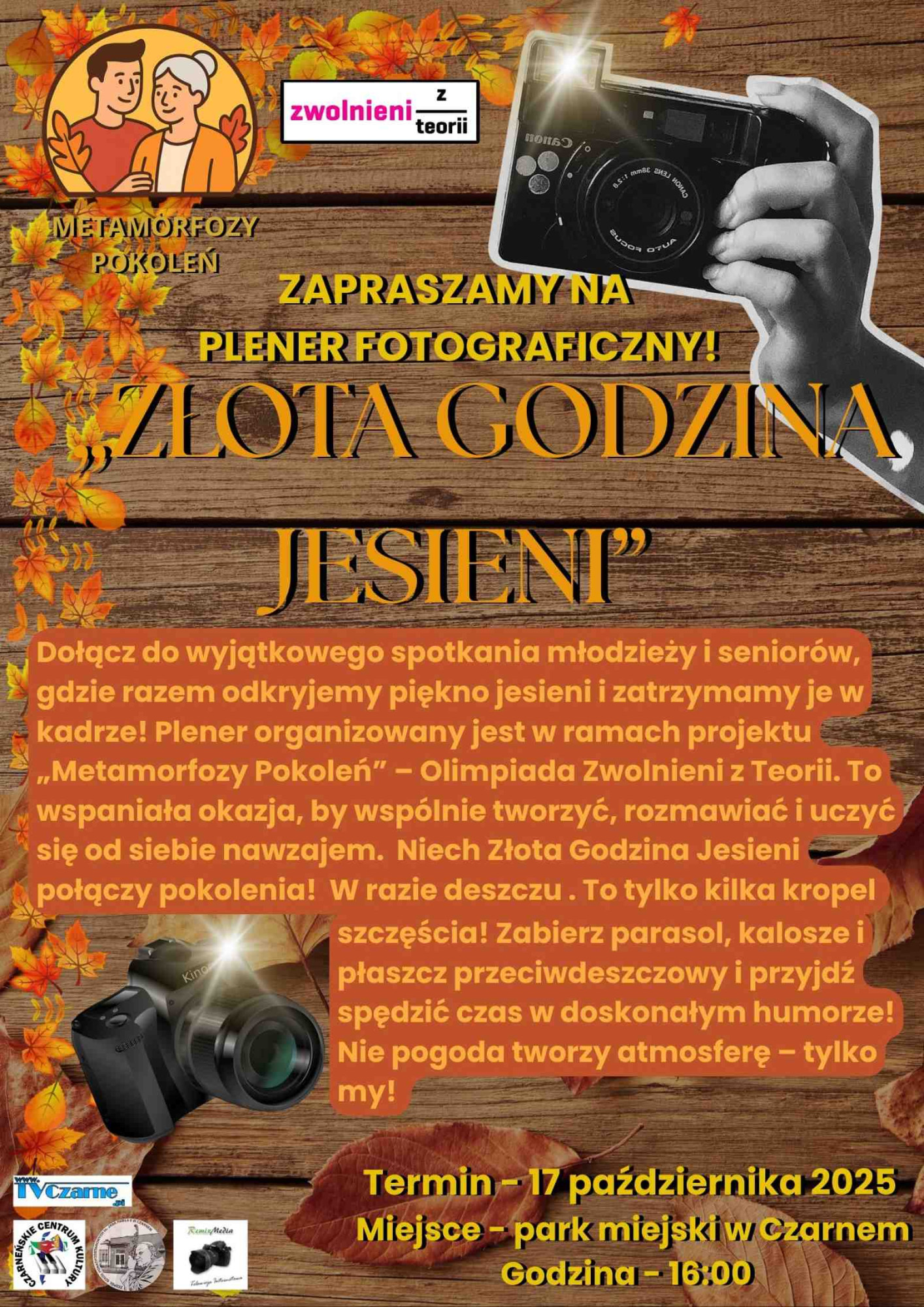 To międzypokoleniowe spotkanie młodzieży i seniorów, którzy wspólnie odkryją piękno jesieni i zatrzymają je w kadrze. Wydarzenie organizowane jest w ramach projektu „Metamorfozy Pokoleń” – Olimpiada Zwolnieni z Teorii.