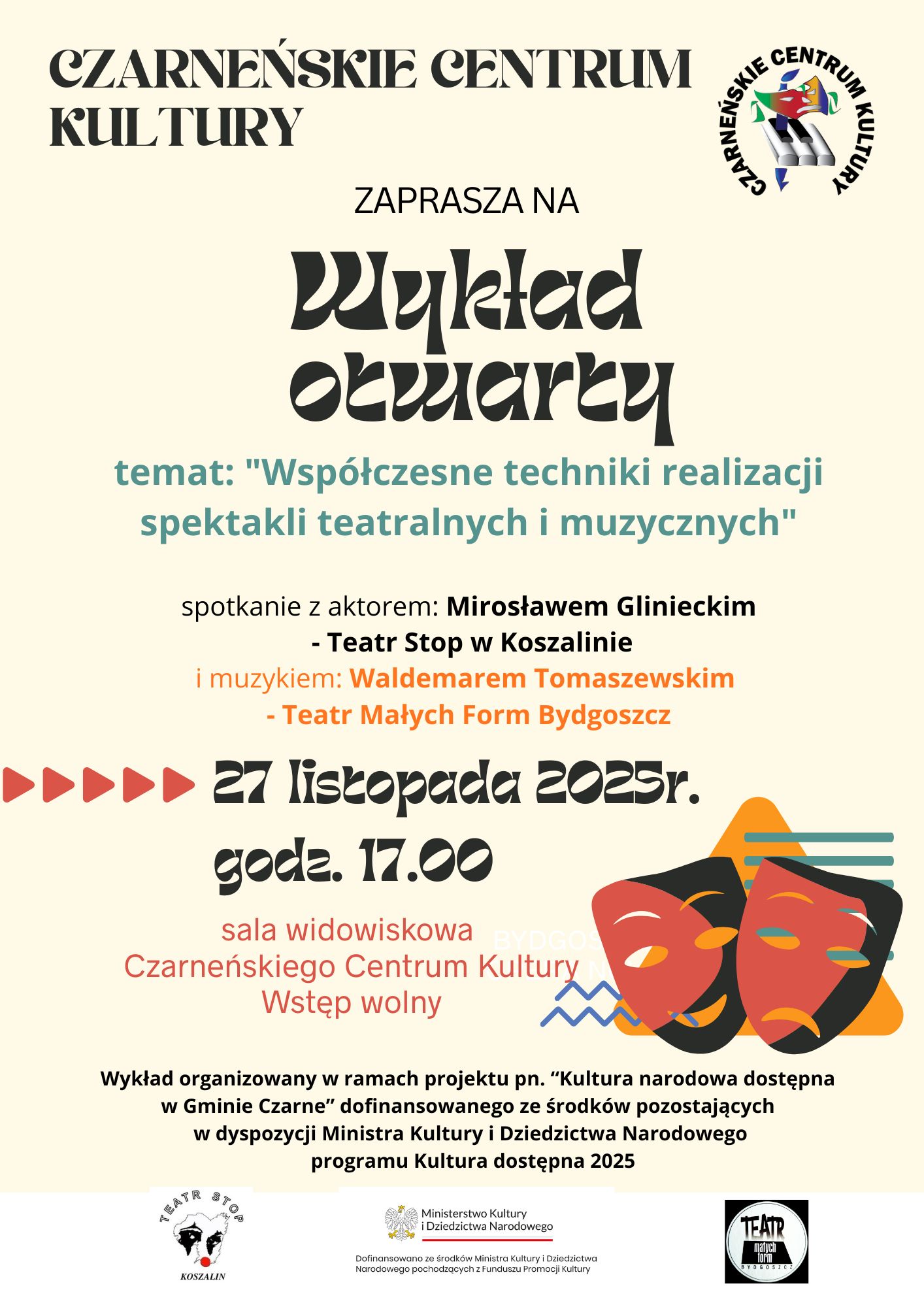 Wykład realizowany jest w ramach projektu „Kultura narodowa dostępna w Gminie Czarne”, dofinansowanego ze środków Ministra Kultury i Dziedzictwa Narodowego w programie Kultura dostępna 2025.