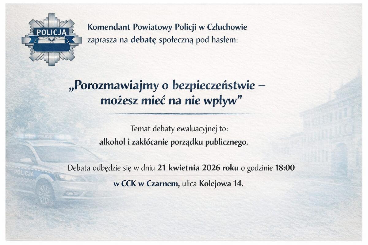 Mieszkańcy Czarnego będą mogli zgłosić problemy związane z alkoholem i zakłócaniem porządku publicznego. We wtorek, 21 kwietnia, w Czarneńskim Centrum Kultury odbędzie się debata społeczna poświęcona bezpieczeństwu w okolicy.