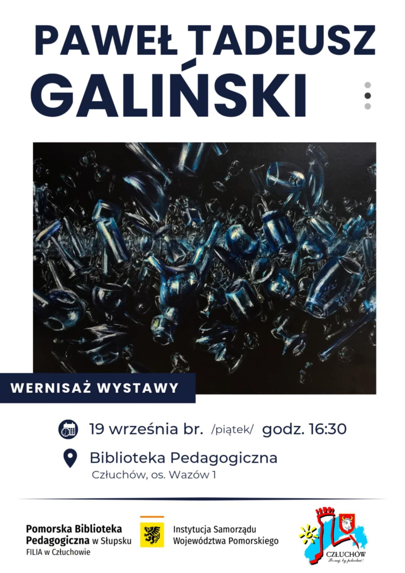 Już w piątek, 19 września, w Pomorskiej Bibliotece Pedagogicznej Filii w Człuchowie odbędzie się wernisaż wystawy malarstwa Pawła Tadeusza Galińskiego. Wydarzenie organizowane jest w ramach Międzynarodowego Pleneru Malarskiego „Człuchów w obrazach zaklęty”, realizowanego z inicjatywy Urzędu Miejskiego w Człuchowie.