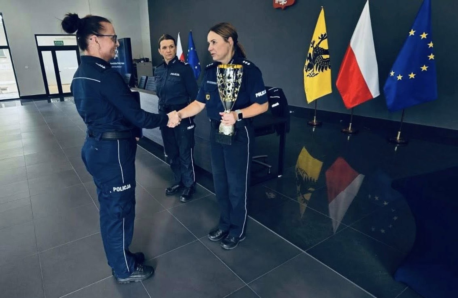 Podczas uroczystego podsumowania konkursu insp. Anna Kos, Zastępca Komendanta Wojewódzkiego Policji w Gdańsku, oraz kom. Monika Kaczmarska, p.o. Zastępcy Naczelnika Wydziału Prewencji KWP w Gdańsku, wręczyły laureatom pamiątkowe puchary i gratulowały znakomitych wyników.