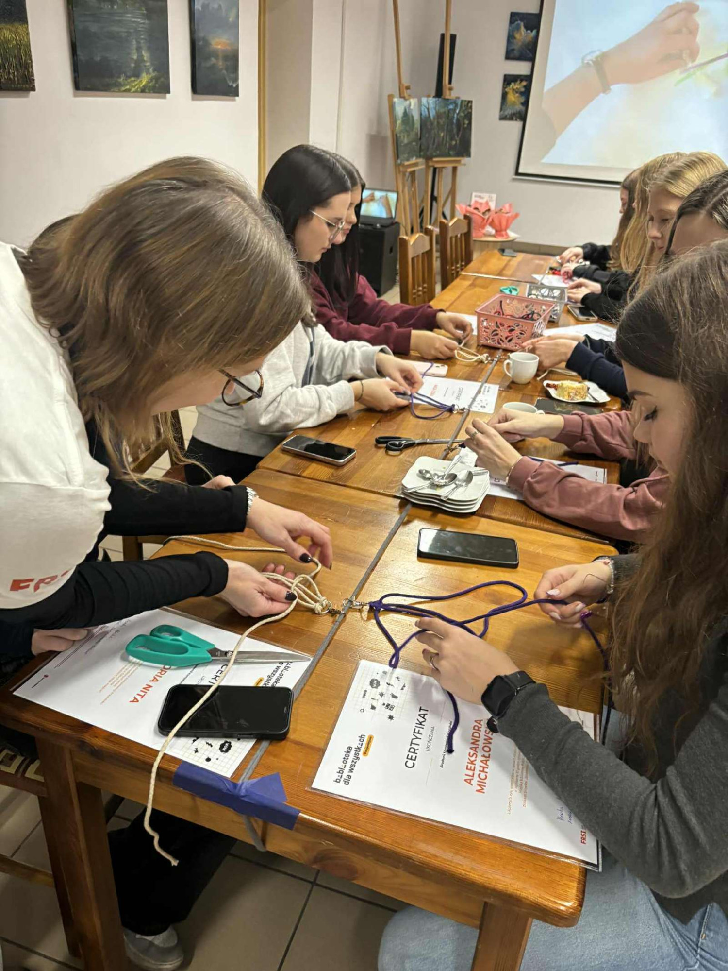 Podczas finałowego spotkania uczestnicy otrzymali certyfikaty i przygotowali pamiątkowe breloki z makramy. Zespół biblioteki podziękował wszystkim zaangażowanym w realizację projektu – za współpracę, energię i wspólnie spędzony czas w inspirującej atmosferze.
