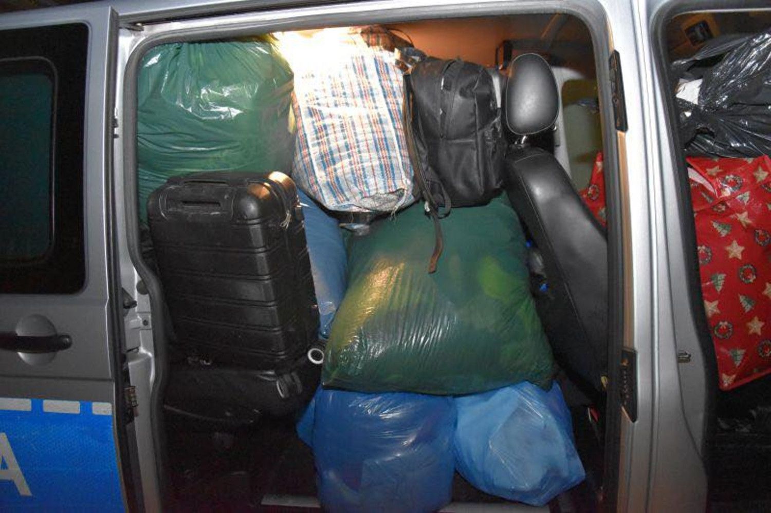 W toku dalszych czynności funkcjonariusze przeszukali pomieszczenia mieszkalne zajmowane przez kobiety na terenie gminy Człuchów. Podczas przeszukania zabezpieczono około 72 worki z odzieżą damską i męską.