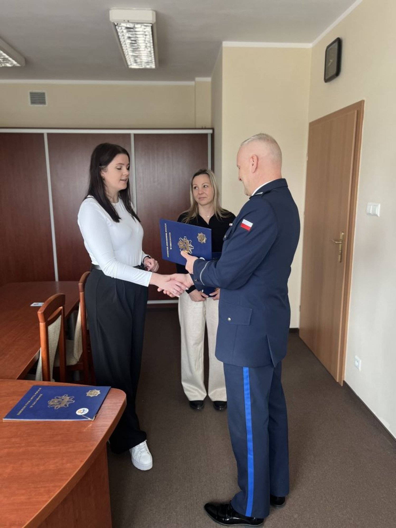 Komendant Powiatowy Policji w Człuchowie mł. insp. Przemysław Bujak podziękował dwóm pracownicom placówki pocztowej – Sylwii Nitz oraz Barbarze Niziałek – za czujność i właściwą reakcję.