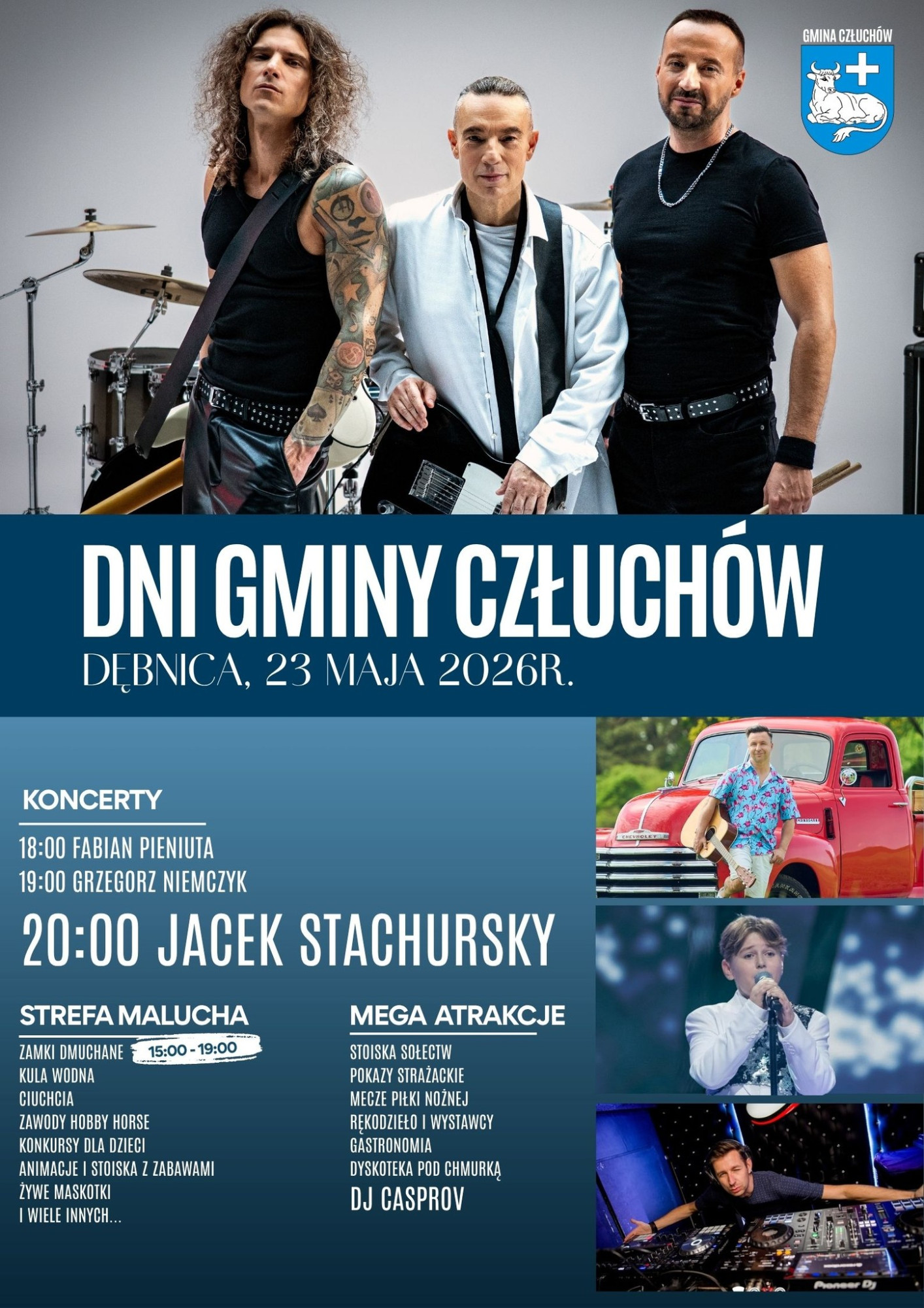 23 maja 2026 roku w Dębnicy odbędą się Dni Gminy Człuchów. Gwiazdą wieczoru będzie Jacek Stachursky, a w programie zaplanowano atrakcje dla dzieci, pokazy, koncerty i zabawę taneczną.