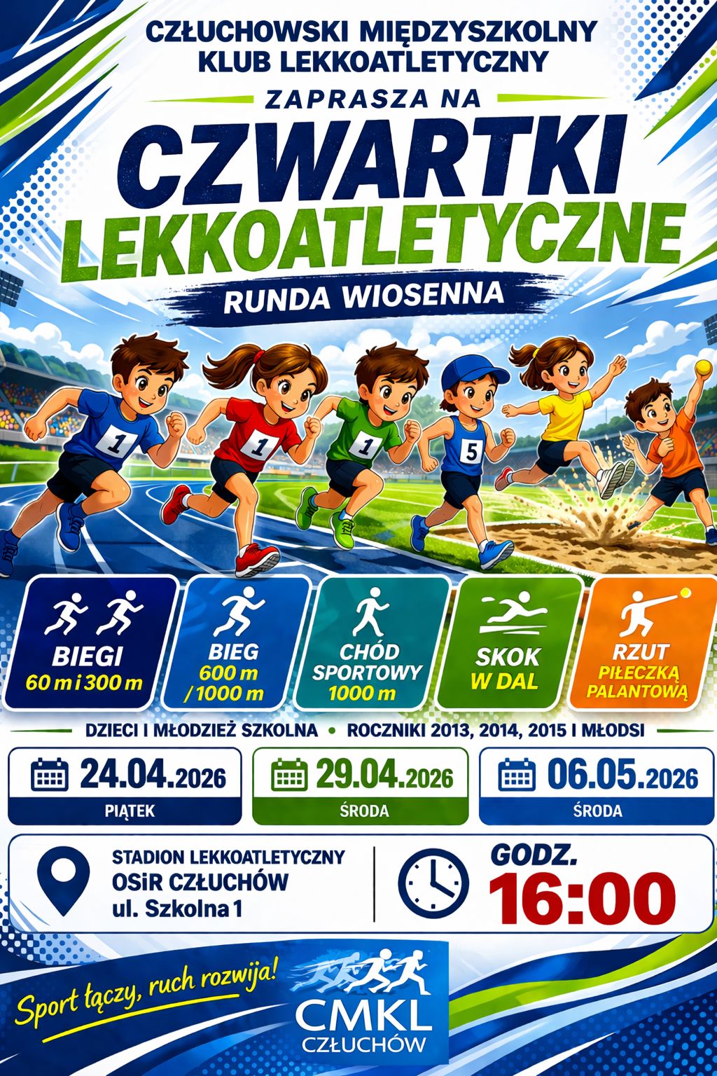 24 kwietnia na stadionie w Człuchowie odbyły się pierwsze zawody w ramach wiosennej edycji „Czwartków Lekkoatletycznych”. Młodzi sportowcy rywalizowali w kilku konkurencjach i już mogą przygotowywać się do kolejnego startu.