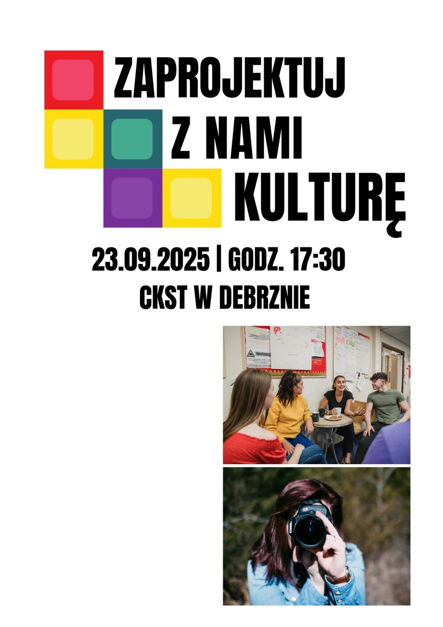 Jak ma wyglądać kultura w Debrznie oczami młodych? O tym będzie można porozmawiać podczas spotkania, które odbędzie się 23 września 2025 roku o godzinie 17:30 w Centrum Kultury – Pracowni Orange.