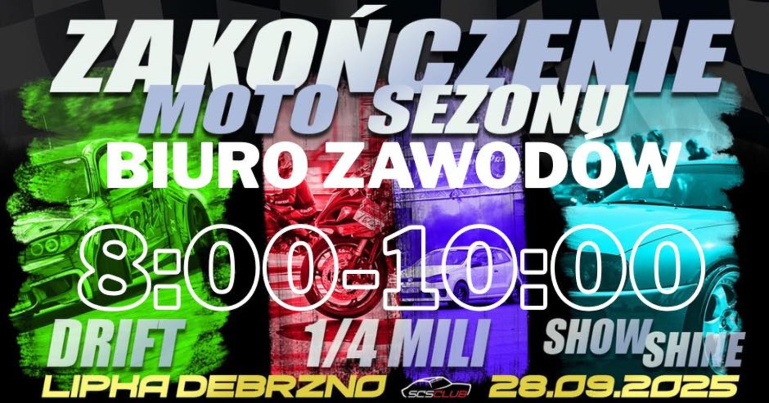 Już w najbliższą niedzielę, 28 września, na lotnisku w Lipce koło Debrzna odbędzie się Zakończenie Sezonu Motoryzacyjnego 2025. To ostatnia taka okazja w tym roku, by spotkać się w gronie pasjonatów motoryzacji i wspólnie pożegnać sezon. Start wydarzenia o godzinie 10:00.