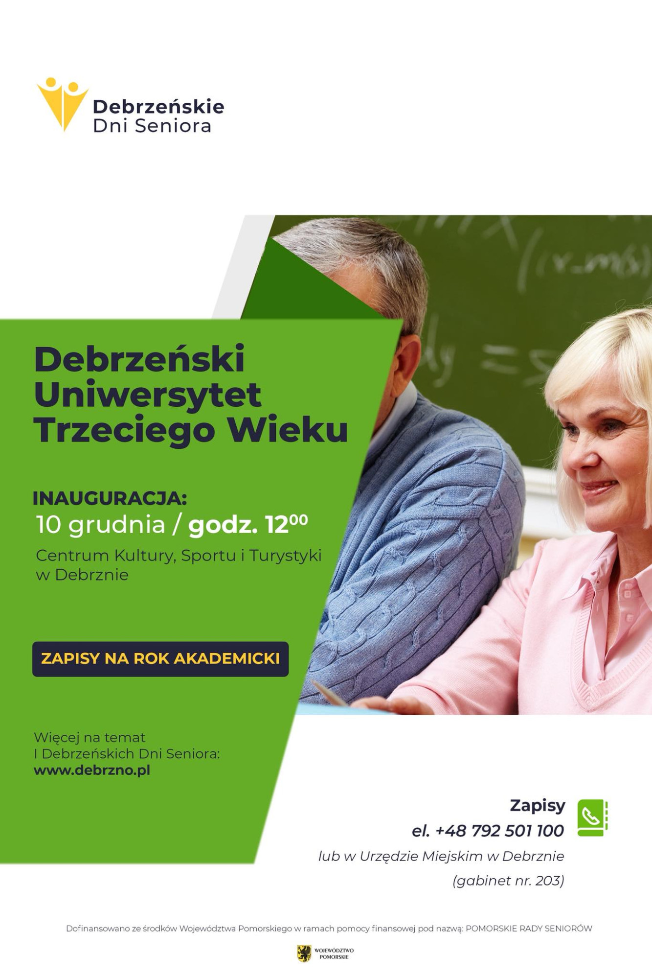 W Debrznie rozpoczęto zapisy na inaugurację Debrzeńskiego Uniwersytetu Trzeciego Wieku, który oficjalnie rozpocznie działalność 10 grudnia o godzinie 12:00. Uroczystość odbędzie się w sali widowiskowej Centrum Kultury, Sportu i Turystyki.