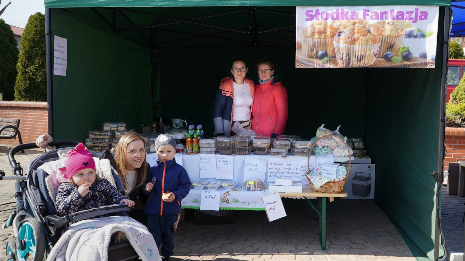 W trakcie kiermaszu pojawił się także zajączek wielkanocny, który spotkał się z dziećmi uczestniczącymi w wydarzeniu.