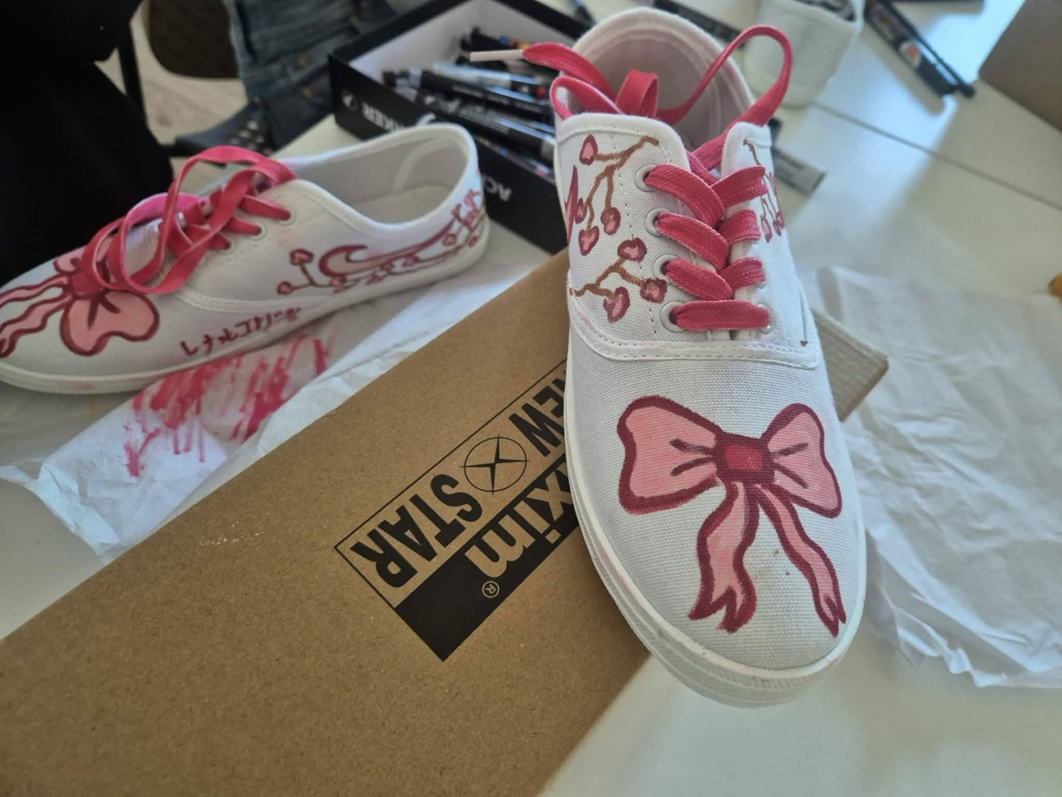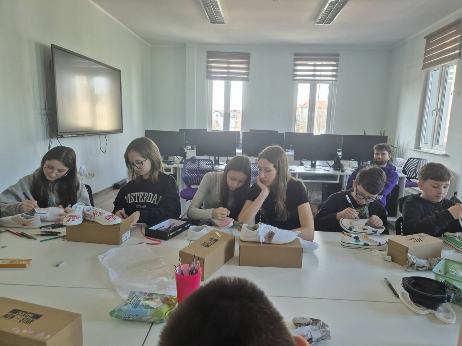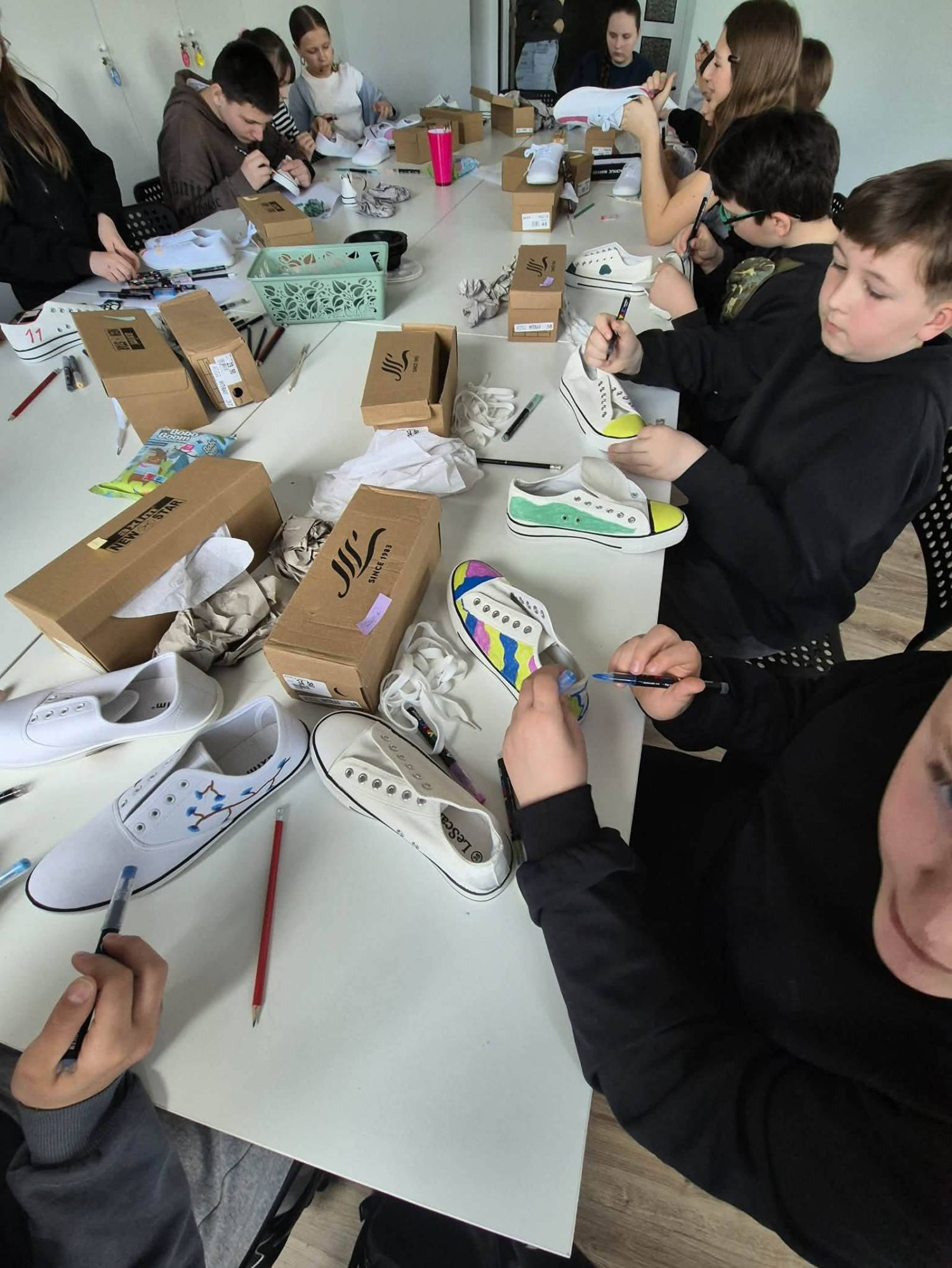 Każdy z uczestników przygotował swój projekt w programie graficznym, a następnie przeniósł go na trampki. W efekcie powstały unikatowe, ręcznie zdobione buty.