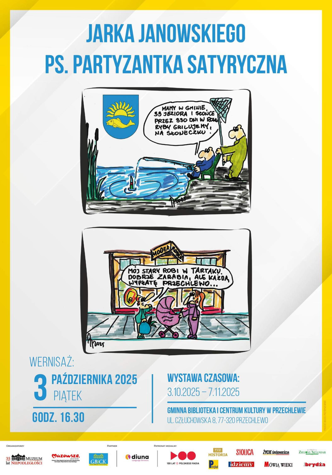 W piątek 3 października o godz. 16:30 w Gminnej Bibliotece i Centrum Kultury w Przechlewie odbędzie się wernisaż wystawy Jarka Janowskiego "Partyzantka Satyryczna".