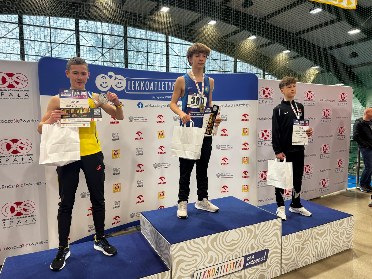 Alex Majer zdobył złoty medal na 200 metrów w kategorii U14, osiągając fantastyczny czas 24,51 s. To nie tylko jego rekord życiowy poprawiony o 1,42 sekundy, ale przede wszystkim nowy halowy Rekord Polski U14. Wynik ten zapewnił mu powołanie do kadry Polski U14 oraz udział w międzynarodowym meczu lekkoatletycznym Austria–Polska–Słowacja, który odbędzie się 29 listopada w Wiedniu. Po zawodach młodzi zawodnicy będą mieli okazję zwiedzić również stolicę Austrii.