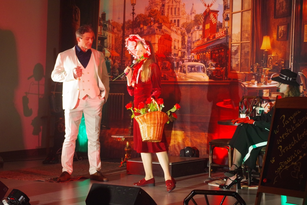 Na scenie wystąpili artyści z Gawry Artystycznej z Poznania. Jak podkreślają organizatorzy, koncert teatralny pozwolił widzom przenieść się w czasy Edith Piaf.